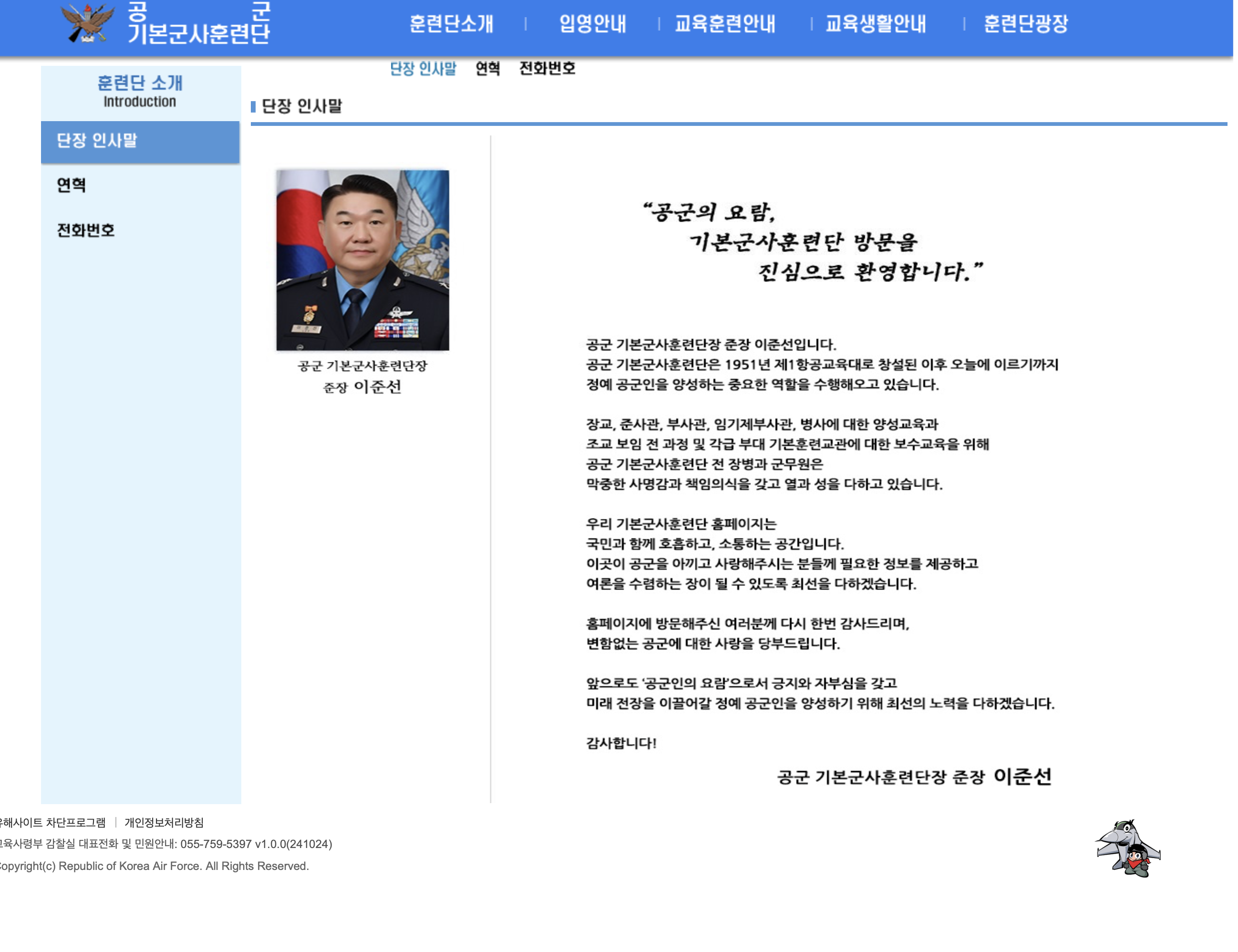 훈련 관련 문의나 도움이 필요할 경우, 아래 연락처를 통해 공군기본군사훈련단에 문의할 수 있습니다.